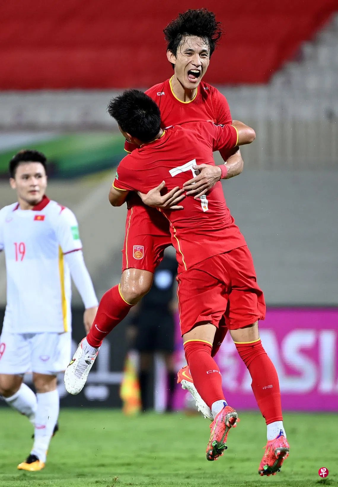 绝杀越南 中国获首胜订户赠阅文章王燊超(上)为中国队攻入绝杀进球后,与队友武磊拥抱庆祝。(新华社)世界杯亚洲区12强外围赛王慧 北京报道中国昨天凌晨(新加坡时间)以3比2险胜越南,赢得2022年卡塔尔世界杯亚洲区12强外围赛的首场胜利。王燊超在完场补时阶段攻入制胜一球,助球队绝杀对手。中国越南世界杯上一篇明晨客战安道尔格雷利什斩获英格兰首球最佳时机下一篇巴西九战全胜出线在望购买此文章