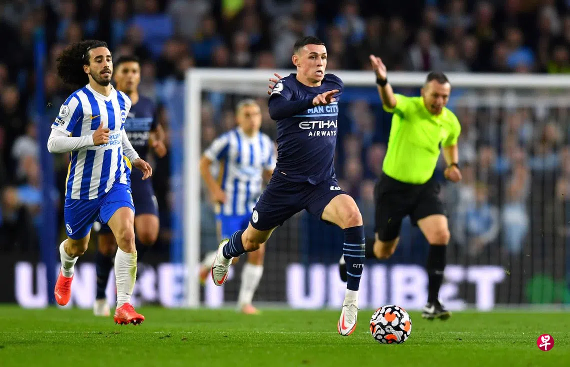 (路透电)英超第九轮,“蓝月亮”曼市(Man City)客战“海鸥”布赖顿(Brighton),小将福登(Foden)利用两次反击机会上演梅开二度,帮助球队4比1轻取主队。