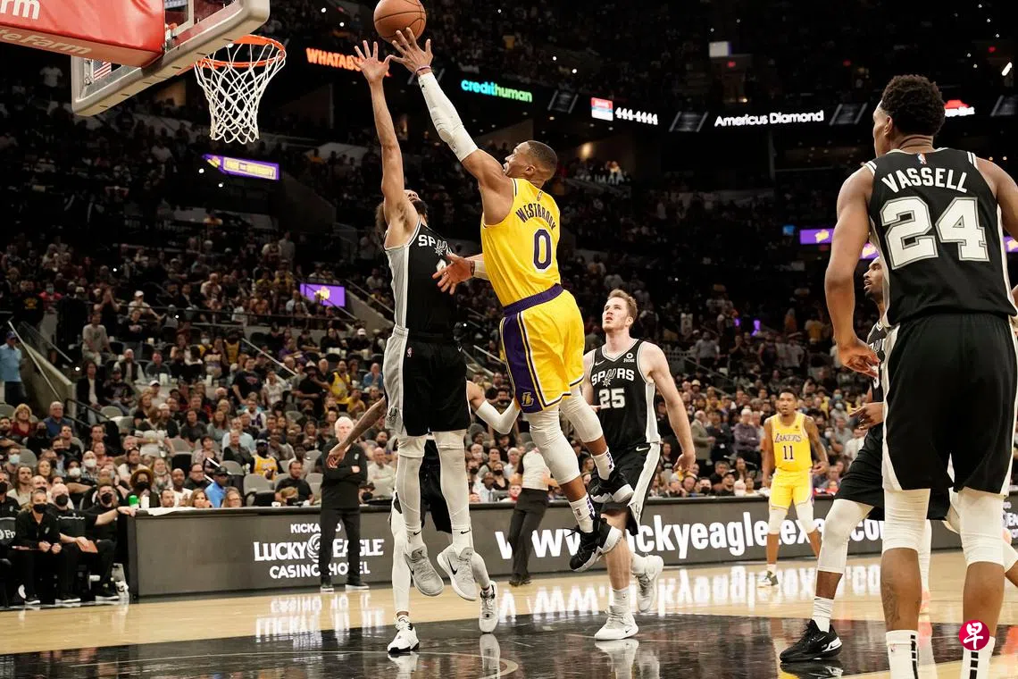 (洛杉矶综合电)在赛季初经历了连败之后,洛杉矶湖人(LA Lakers)终于迎来了本赛季首个连胜。昨天,湖人在落后12分下第四节顽强扳平比分,并在加时赛以125比121客场击败圣安东尼奥马刺(San Antonio Spurs),“韦少”韦斯特布鲁克(Westbrook)终于迎来爆发。