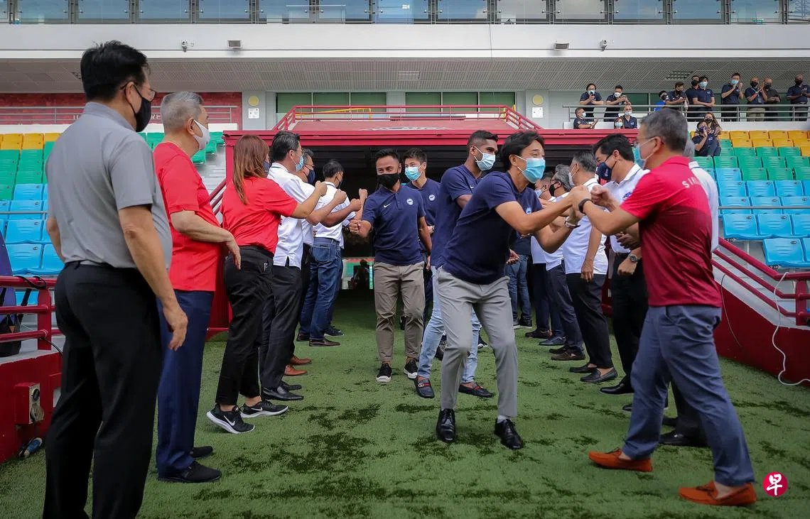 新加坡足总昨天下午在惹兰勿刹体育场为国家队举办答谢活动,在认可雄狮队过去一年来付出的同时,也感谢球迷的一路相伴。