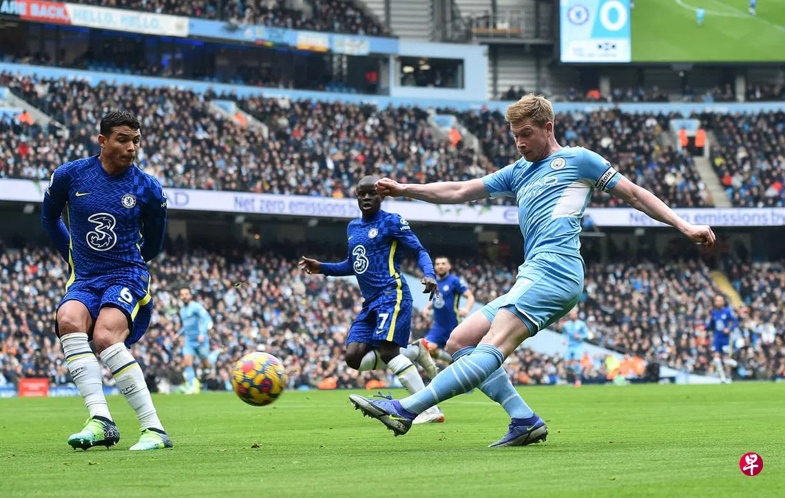 凭借中场大将德布吕纳(De Bruyne)第70分钟于禁区外攻入的世界波,领头羊曼市(Manchester City)在昨晚(新加坡时间)的英超焦点战中,主场以1比0小胜排名第二的“蓝军”切尔西(Chelsea),豪取联赛12连胜,并将领先优势扩大至惊人的13分。