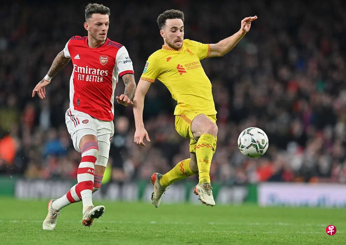 上周主场作战,红军以11人打10人却遭“炮兵”阿申纳(Arsenal)以0比0闷和,表现令人失望,但他们显然已吸取教训,在昨晨的半决赛次回合凭翼锋若塔(Jota)在各半场的一球,以2比0反客为主。