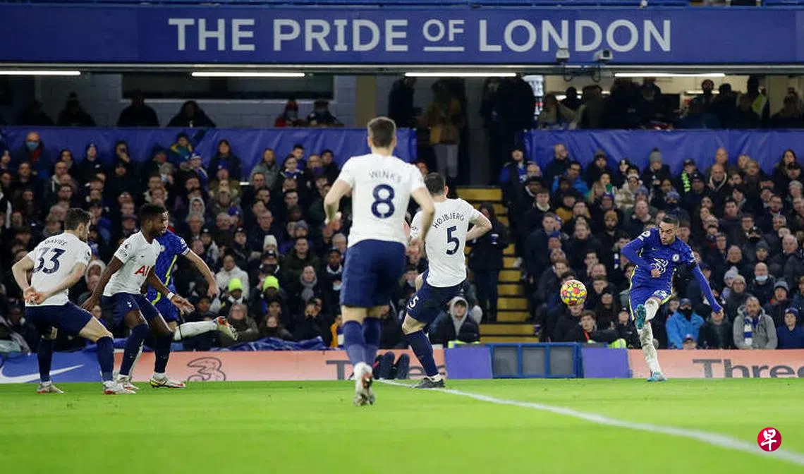 蓝军虽积极抢攻,但都无功而返,反而在第40分钟被热刺射脚凯恩(Kane)捅破龙门。不过因他进球前推跌蓝军中卫蒂亚戈·席尔瓦(Thiago Silva)在先,进球无效。