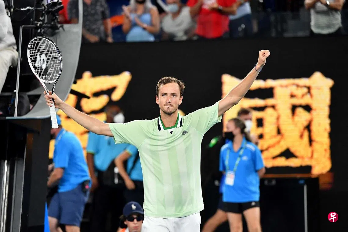 本季澳网男单世界排名最高的梅德韦杰夫在昨天复赛中上演惊天大逆转,在落后两盘的绝对劣势下,以3比2淘汰加拿大新星阿利亚西姆。