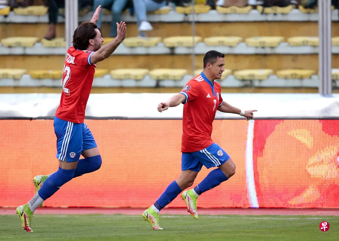 (拉巴斯综合电)凭前阿申纳(Arsenal)球星桑切斯(Sanchez)的两个进球,智利在昨天凌晨(新加坡时间)的世界杯南美洲区外围赛以3比2攻克玻利维亚的魔鬼主场,保住晋级今年底卡塔尔世界杯的希望。