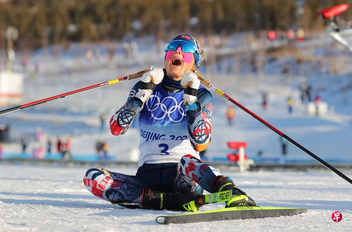 四年前在平昌冬奥会上,瑞典的夏洛特·卡拉(Charlotte Kalla)击败八次冬奥金牌得主、挪威名将玛丽特·比约根(Marit Bjorgen)夺冠。今年,特蕾丝终于为挪威夺回暌违八年的项目金牌。她以超过30秒的绝对优势力压俄罗斯奥委会的纳塔利娅·涅普里亚耶娃(Natalya Nepryayeva,44分43秒9)以及奥地利的特雷莎·施塔德勒贝尔(Teresa Stadlober,44分44秒2)获得北京冬奥首金。