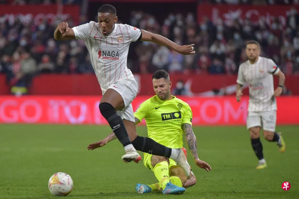 (塞维利亚综合电)在租借加盟西甲球队塞维利亚(Sevilla)的第二场比赛中,曼联(Manchester United)前锋马夏尔(Martial)贡献了一次助攻,助新东家在昨天凌晨(新加坡时间)的西甲联赛主场以2比0击退埃尔切(Elche),继续向领头羊皇家马德里(Real Madrid)施压。