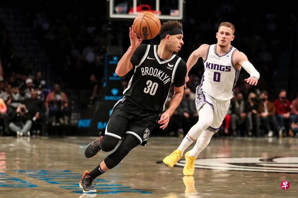 网队刚刚经历了大交易,哈登(Harden)离队,赛斯·柯里(Seth Curry)与德拉蒙德(Drummond)迎来了网队的首秀。比赛开场,赛斯·柯里就命中三分,大王这边福克斯(Fox)中距离跳投得手。首节比赛结束,网队35比24领先对手11分。