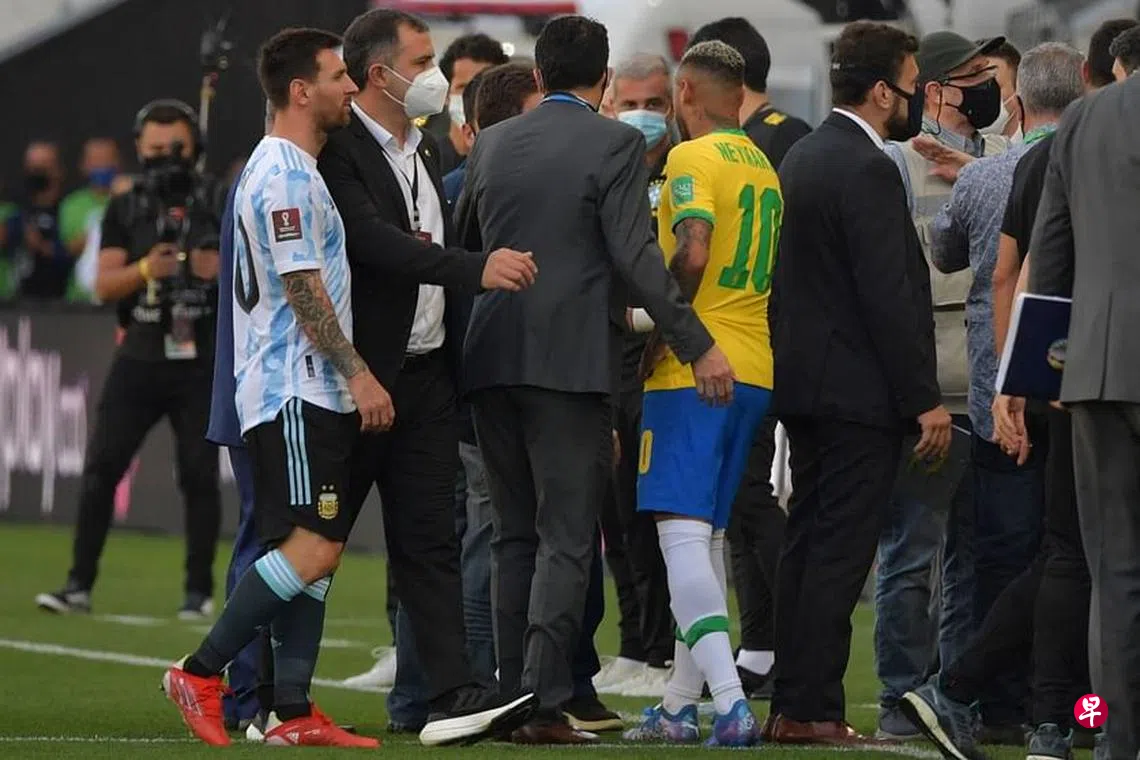 巴西对阵阿根廷去年9月在圣保罗举行的这场世界杯南美洲区外围赛备受瞩目,不料比赛开始后五分钟,巴西卫生监督局官员进入赛场,以四名阿根廷球员违反防疫规定为由中止比赛。