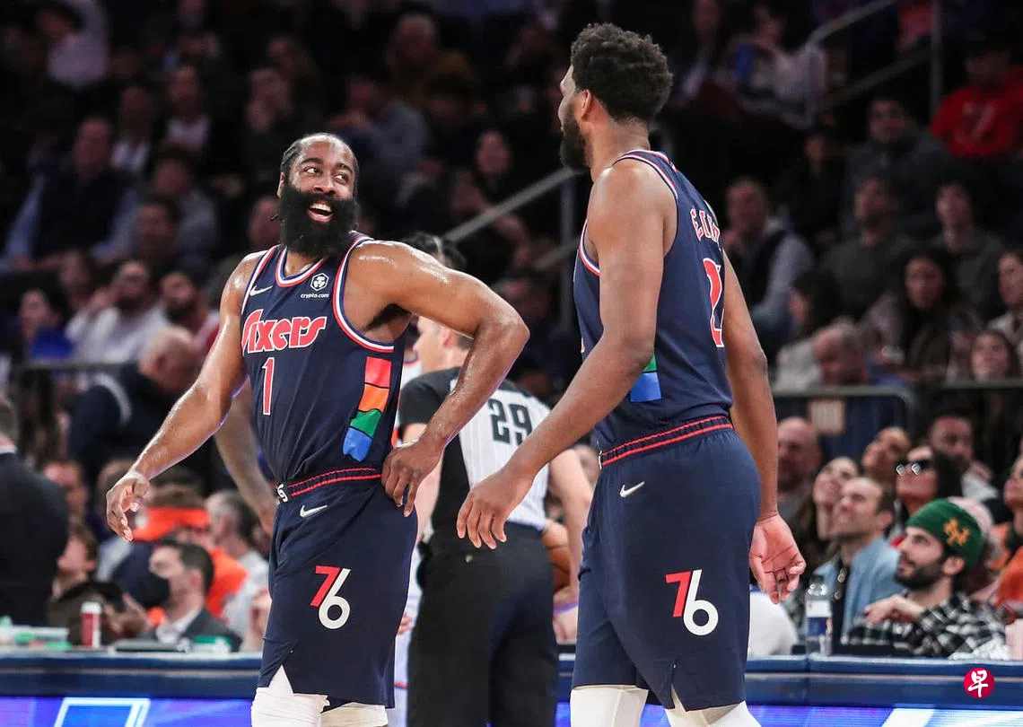 (纽约综合电)哈登(Harden)加盟费城76人(Philadelphia 76ers)后首次砍下三双战绩,以29分、16次助攻与10个篮板的数据,帮助球队125比109战胜纽约尼克斯(New York Knicks)。哈登赛后形容,此役感觉就像在主场比赛。