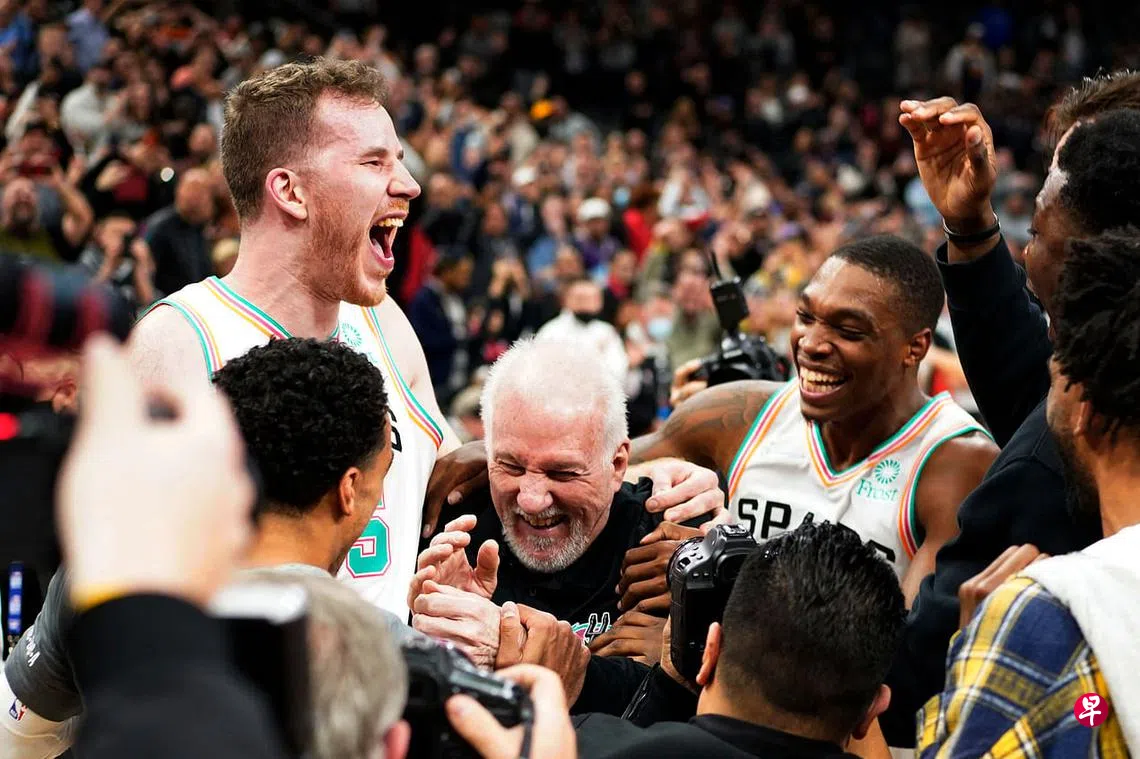 (洛杉矶综合讯)圣安东尼马刺(San Antonio Spurs)在本地时间昨天早上的美国职业篮球赛(NBA)上以104比102逆转战胜犹他爵士(Utah Jazz),马刺的这场胜利也让主帅波波维奇(Popovich)创下NBA历来最多的1336场常规赛胜利纪录。