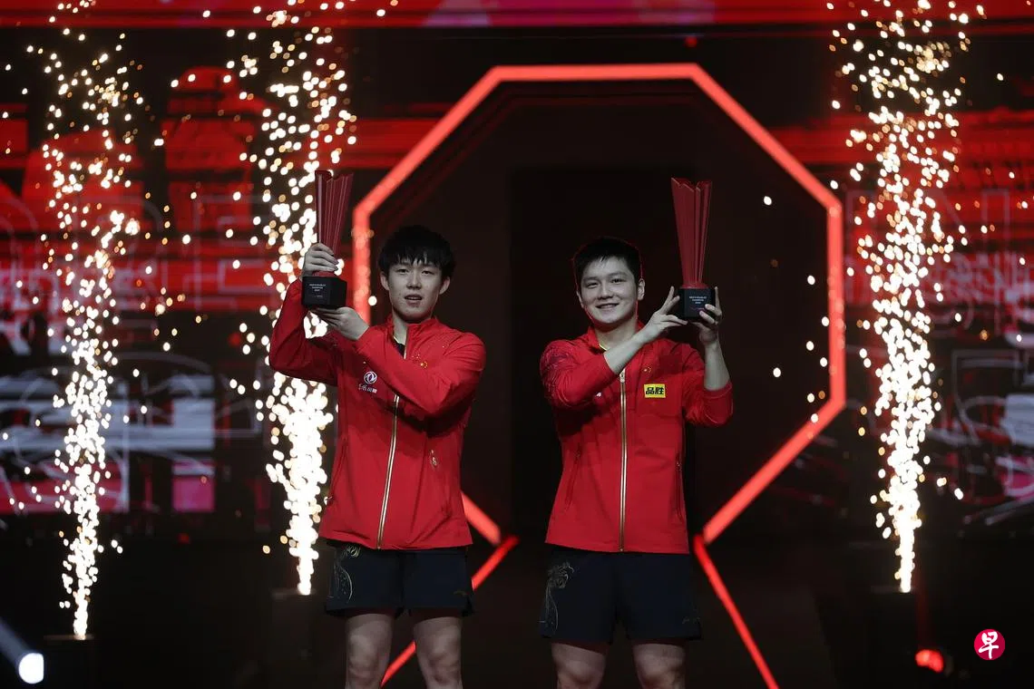 WTT新加坡大满贯昨天上演了三场精彩对决,陈梦和王曼昱与各自的对手苦战七局晋级会师女单决赛,樊振东/王楚钦组合夺得赛事首座男双冠军奖杯。