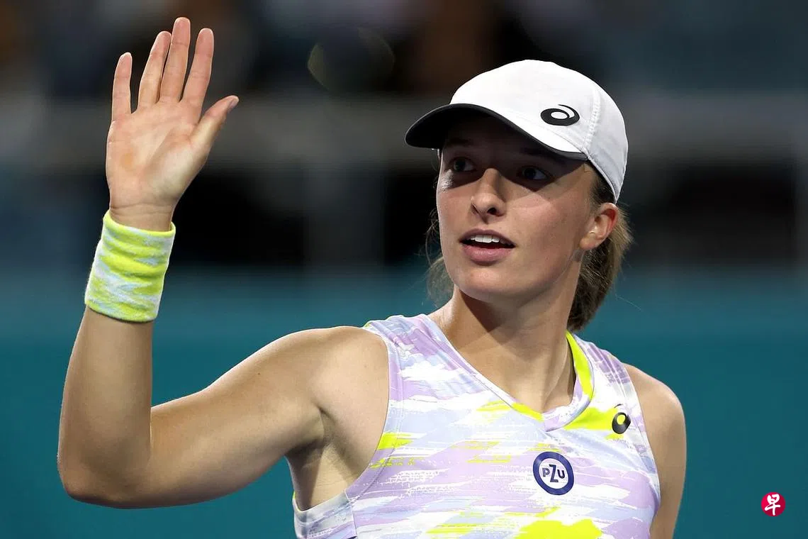 (迈阿密综合电)随着在迈阿密公开赛中打入女单第三圈,20岁波兰小将伊加·斯瓦泰克(Iga Swiatek)即将在4月4日公布的新一期WTA(女子网球员协会)世界排名中登上世界排名第一的位置。她将成为阿什莉·巴蒂(Ashleigh Barty)退役后的首位女单世界第一。