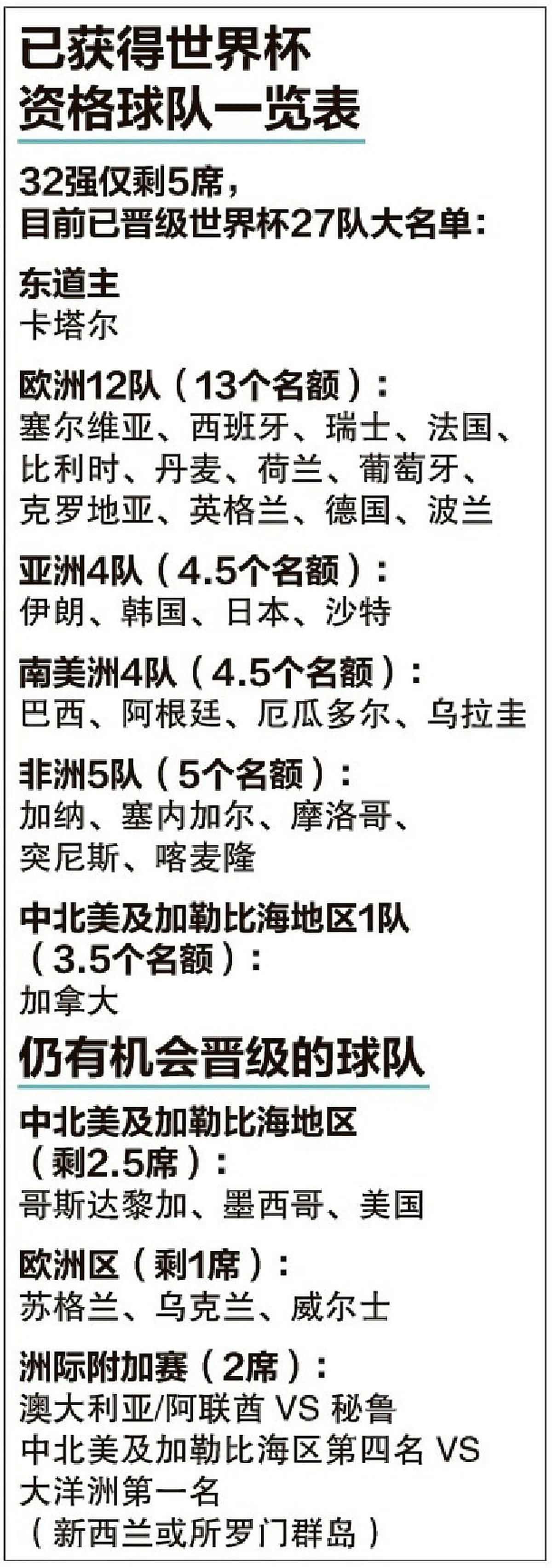 另一边厢,波兰在主场迎战瑞典,上半场两队互交白卷,下半场莱万多夫斯基(Lewandowski)罚球命中,泽林斯基利(Zielinski)禁区内抽射破门扩大比分,最终波兰主场2比0击败瑞典,历史上第九次杀入世界杯正赛。