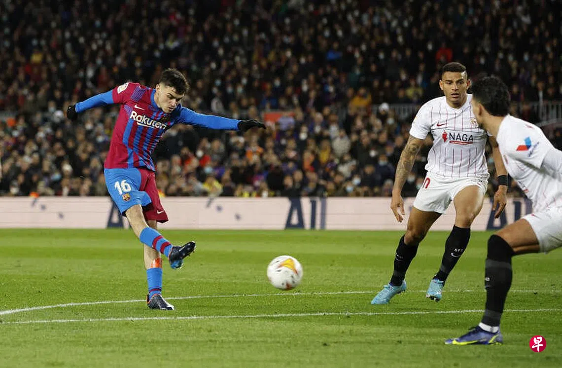本地时间今晨的西甲焦点战,巴塞罗那靠中场新星佩德里(Pedri)连环两下假动作骗过对手后,禁区外一脚定江山,主场以1比0小胜塞维利亚。