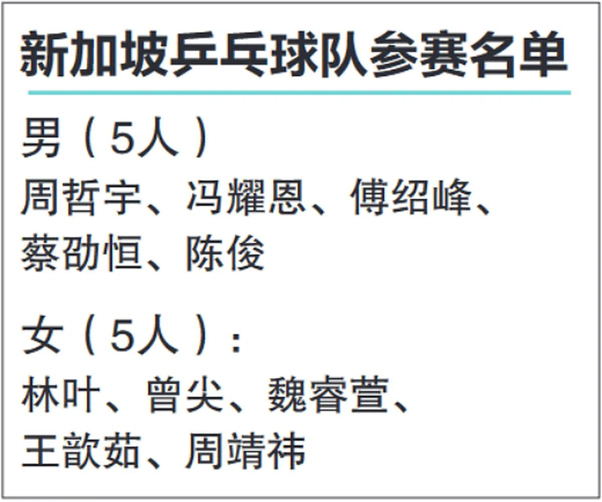 我国头号乒乓球女将冯天薇早已表明不参加本届东运会。2019年底入籍新加坡的曾尖被赋予重任,除了将与林叶携手出战女单赛之外,还会参加女双、混双和女团赛。