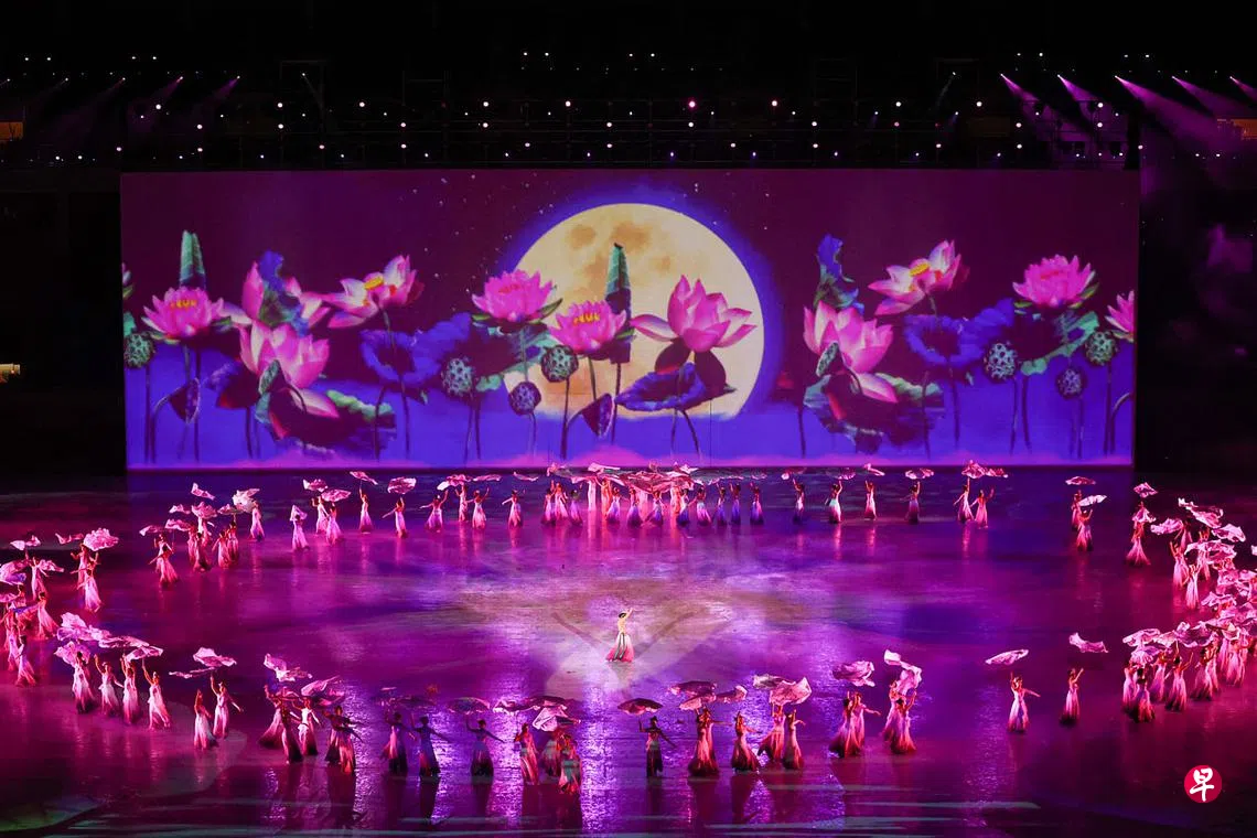 正式进入艺术表演环节后,不论是越南传统的竹子舞、莲花舞、斗笠(越南女子常戴的尖尖帽子)与奥黛(越南女子类似旗袍的传统服装)秀,还是向世人展示东湖版画这个越南传统民间艺术,主办方都利用了映射和虚拟现实技术,给现场与电视机前面的观众带来了一场绝美和精彩的视觉盛宴。将传统与现代科技完美结合,是本届东运会的最大亮点。