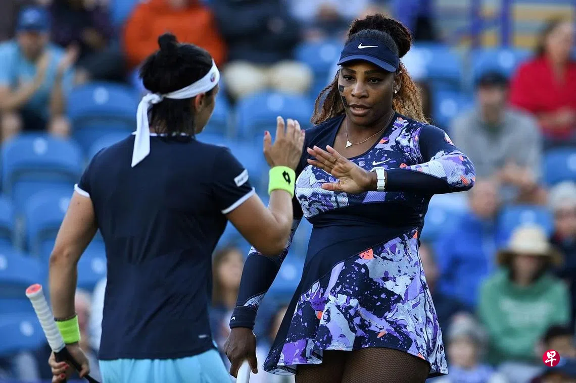 (伊斯特本法新电)美国“黑珍珠”塞雷娜·威廉姆斯(Serena Williams)携突尼斯好手昂斯·加博尔(Ons Jabeur)昨天凌晨(新加坡时间)在伊斯特本国际网球赛女双再次获胜,以6比2、6比4横扫台日组合詹晧晴/青山修子,闯入四强之林。