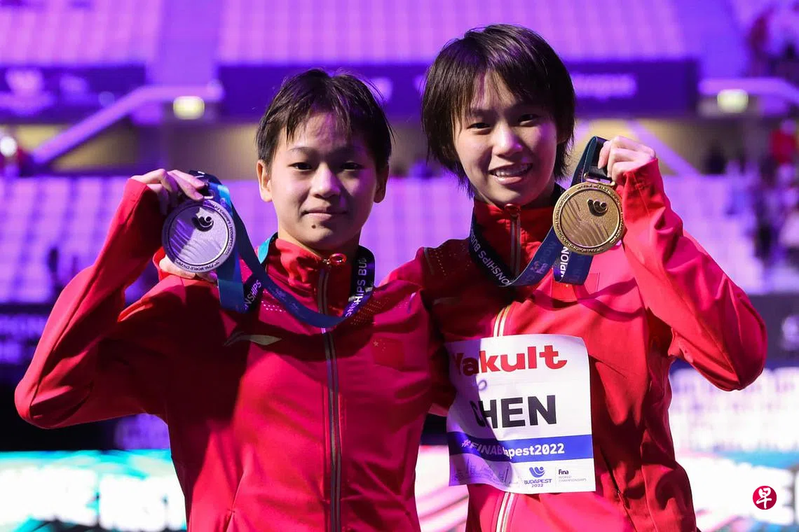 (布达佩斯新华电)中国两名跳水女将陈芋汐和全红婵在布达佩斯游泳世锦赛的女子10米跳台展开激烈争夺,最终陈芋汐以0.3分优势力压队友夺冠。