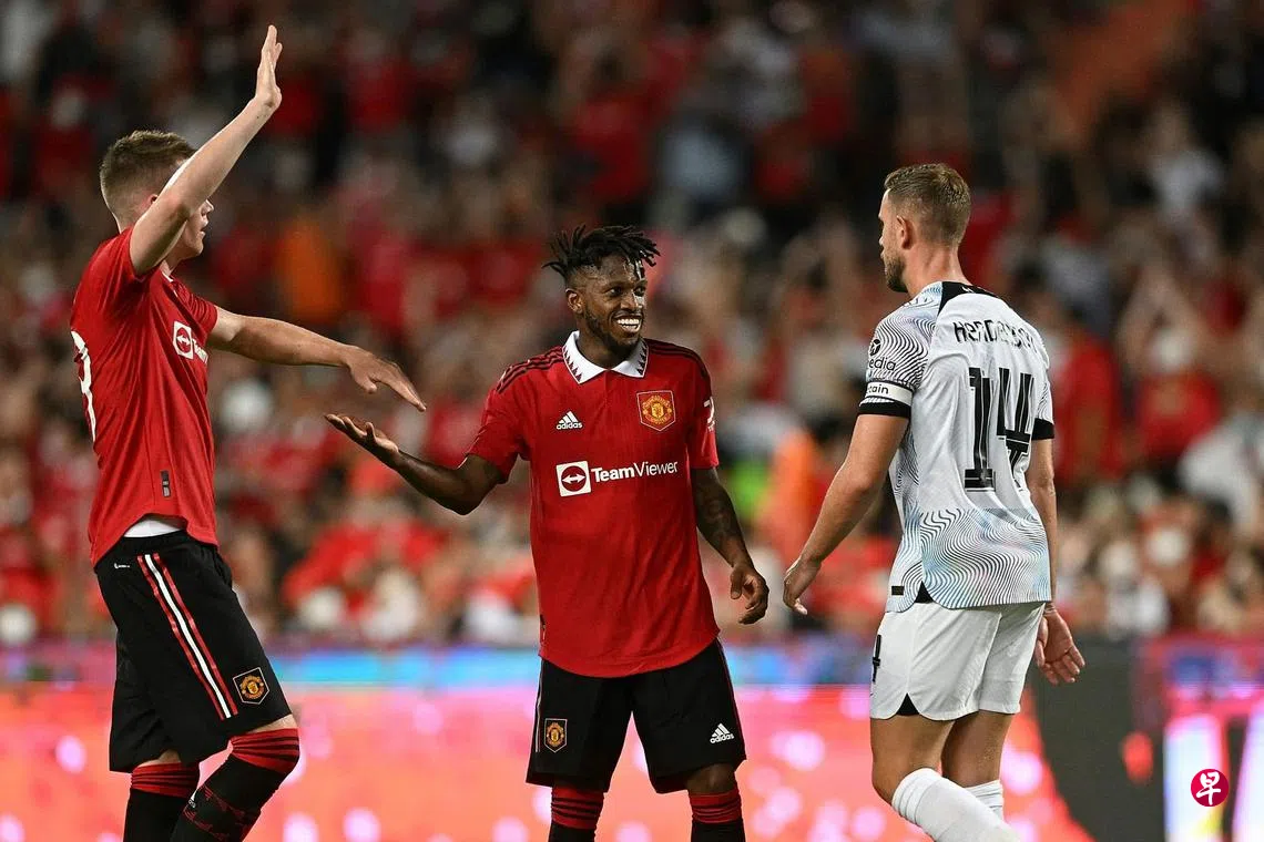 (曼谷综合电)双红会的季前赛星期二(7月12日)晚上在泰国曼谷开打,为英超新赛季热身,“红魔”曼联(Man Utd)最终以4比0横扫“红军”利物浦(Liverpool)。