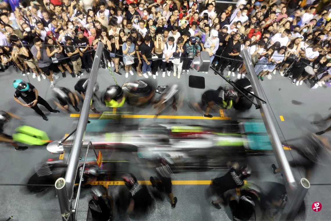 和往年一样,新加坡F1维修站大楼在练习赛前一天的星期四开放给成功索票的公众参观。公众不仅能近距离见到赛车,还能目睹车队技师们如何齐心协力,在极短的时间内为赛车换胎。