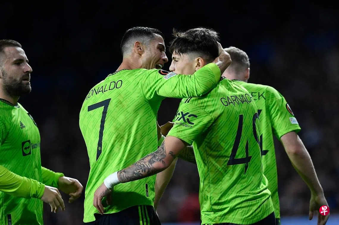 曼联客战西班牙球队皇家社会(Real Sociedad),要净胜对手至少两球才能夺小组第一。“帅罗”罗纳尔多(Ronaldo)在第17分钟送上妙传,助攻18岁边锋加纳乔(Garnacho)破门。