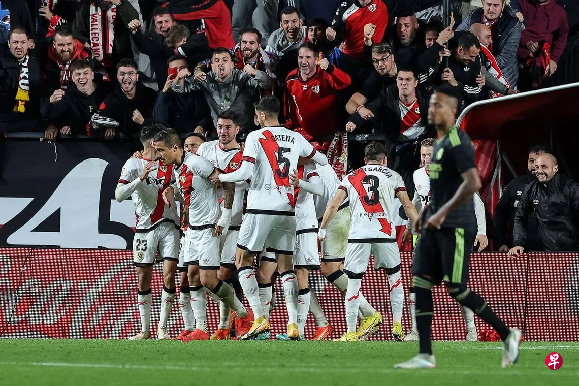 (马德里法新电)西班牙甲级联赛领头羊皇家马德里(Real Madrid)在新加坡时间星期二凌晨的联赛以2比3意外不敌同城对手巴列卡诺(Vallecano),吞下本赛季首场西甲败仗的同时,也让出榜首位置,另一西甲传统豪门巴塞罗那(Barcelona)取而代之。