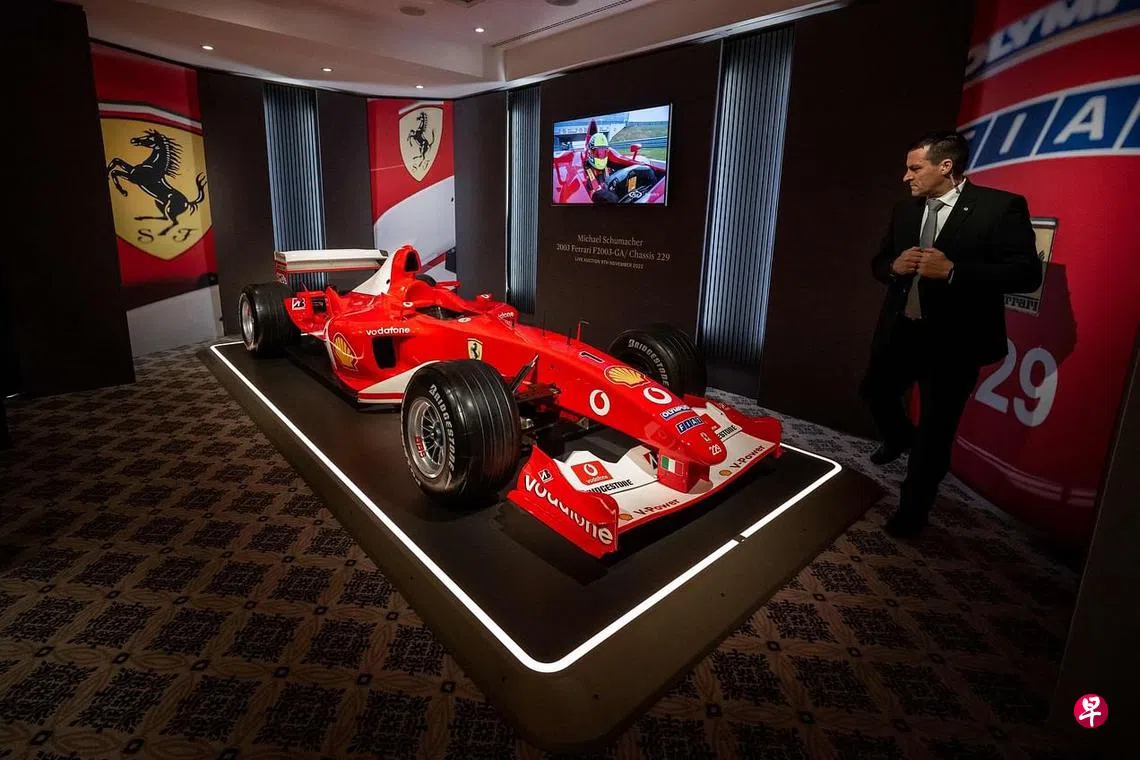(日内瓦法新电)世界一级方程式(F1)退役车神舒马赫驾驶过法拉利跑车在瑞士日内瓦成功拍卖,以近1500万美元(2100万新元)创下F1赛车拍卖纪录。