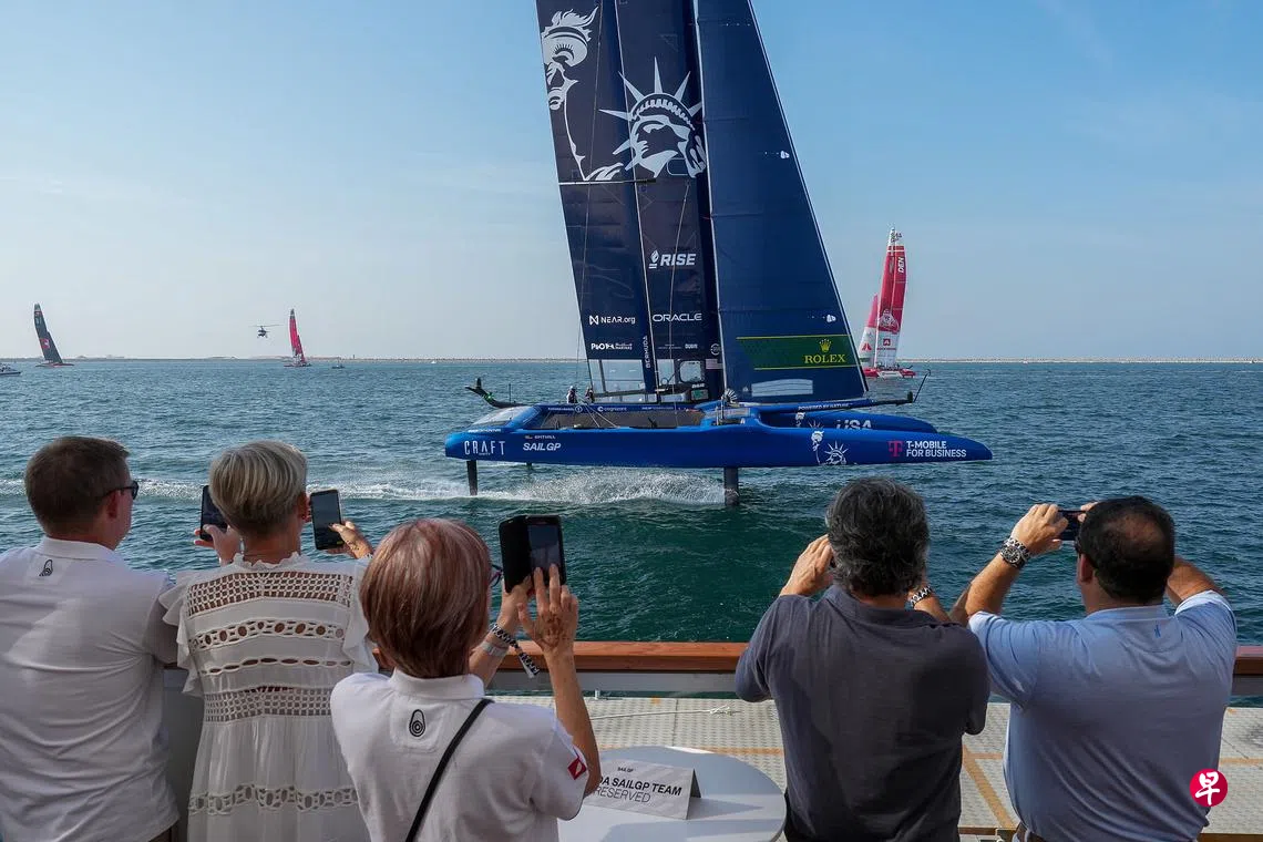 国际帆船大奖赛处处都是高科技的结晶,但科技再强还是要“看天吃饭”,迪拜站首日赛场刮不起强风,高速乘风破浪的场面不多。