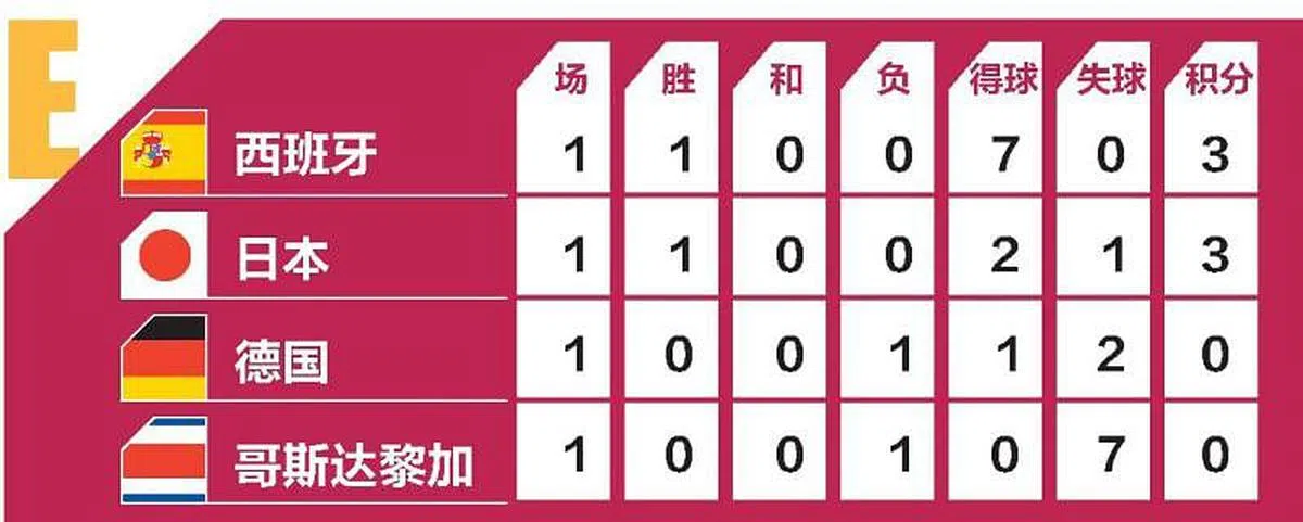 在2010及2014年先后捧起大力神杯的“斗牛士”西班牙与“日耳曼战车”德国在卡塔尔世界杯分别经历了天堂与地狱般的开局,西班牙7比0横扫哥斯达黎加,取得他们在世界杯历史上的最大胜仗,出线前景一片光明;德国则在惨遭日本以2比1逆转后被推到了悬崖边。