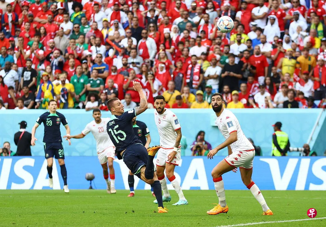 卡塔尔世界杯小组赛D组第二轮星期六(11月26日)傍晚在贾努布体育场(Al-Janoub Stadium)开踢。凭借前锋杜克(Duke)的一记“回头望月”头球,“袋鼠军团”澳大利亚1比0小胜“迦太基之鹰”突尼斯,保住小组出线希望。主帅阿诺德(Arnold)赛后说,本场比赛球员们展现出了澳洲的战斗精神。