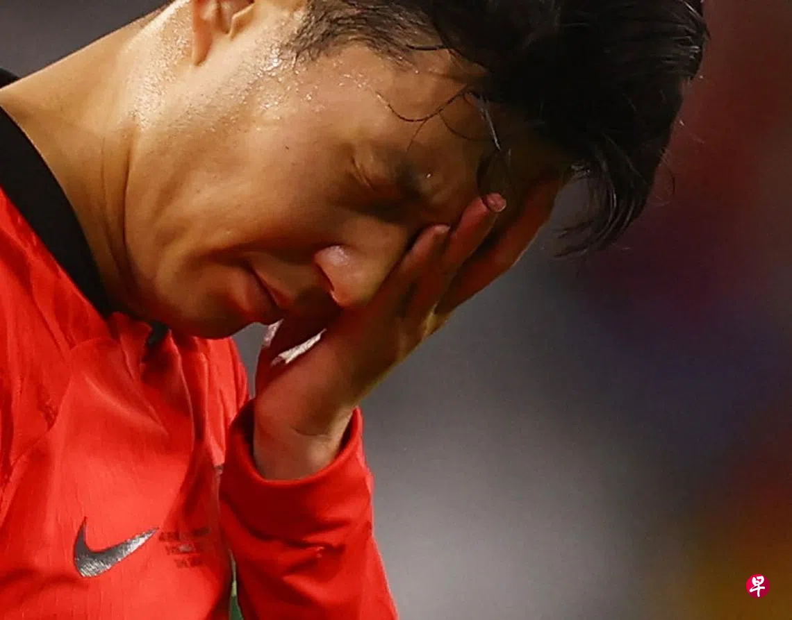 (多哈综合电)韩国在第二轮小组赛不敌加纳,球星孙兴慜赛后感到非常抱歉。比赛结束后有加纳队的教练上前要和孙兴慜自拍,他一脸沮丧地低头转身离开。