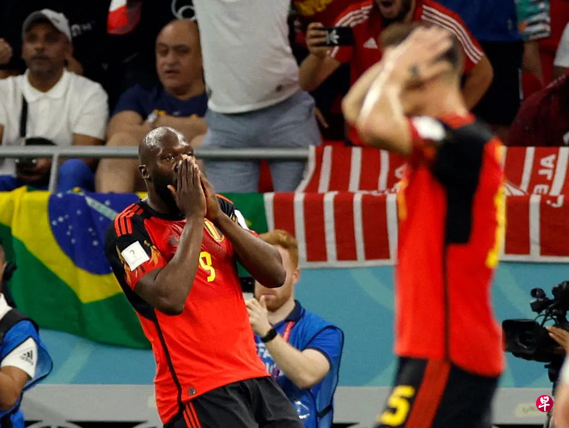 世界杯F组最后一轮赛事星期四(12月1日)晚开打,比利时替补前锋卢卡库(Lukaku,左)错失多个黄金进球机会,世界排名第二的球队只能以0比0踢和上届世界杯亚军克罗地亚;摩洛哥则以2比1击败已经出局的加拿大。