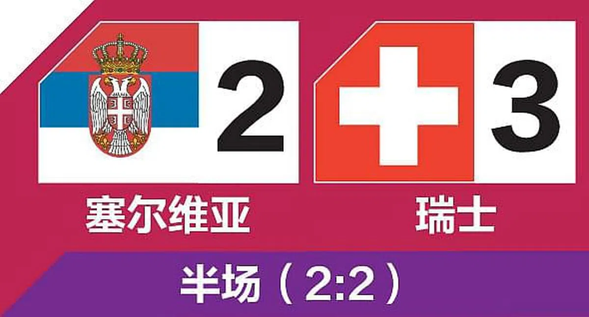 对阵瑞士的这场小组赛也是一样。在瑞士由沙奇里(Shaqiri)率先进球后,塞尔维亚两位优秀中锋米特罗维奇(Mitrovic)和弗拉霍维奇(Vlahovic)连续进球,助球队反超比数。此时如果能再进一球,塞尔维亚就能挤上通往16强的末班车,可是在上半场即将结束时,沙奇里禁区右侧一脚横传,昂博洛(Embolo)跟上门前近距离左脚轻松推射入网,瑞士2比2扳平。