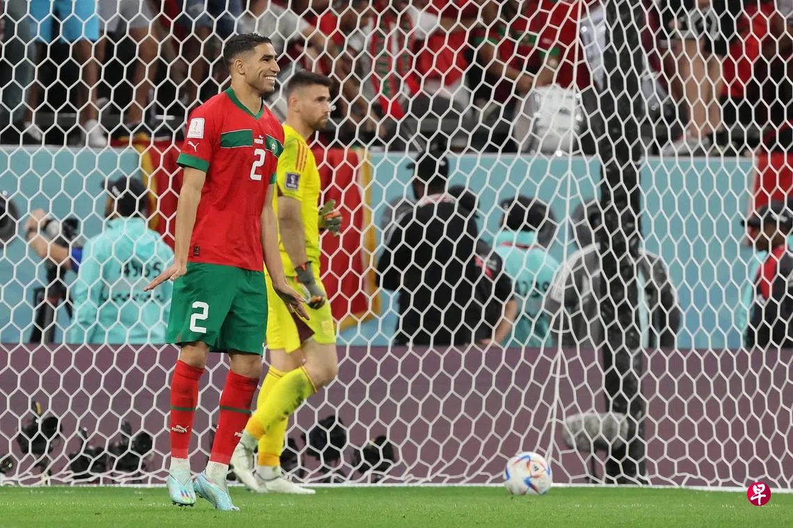 在西班牙前三轮的点球全部射失后,哈基米以一记冷静的勺子点球为摩洛哥奠定胜局,并亲手将他熟悉的西班牙队送回家。
