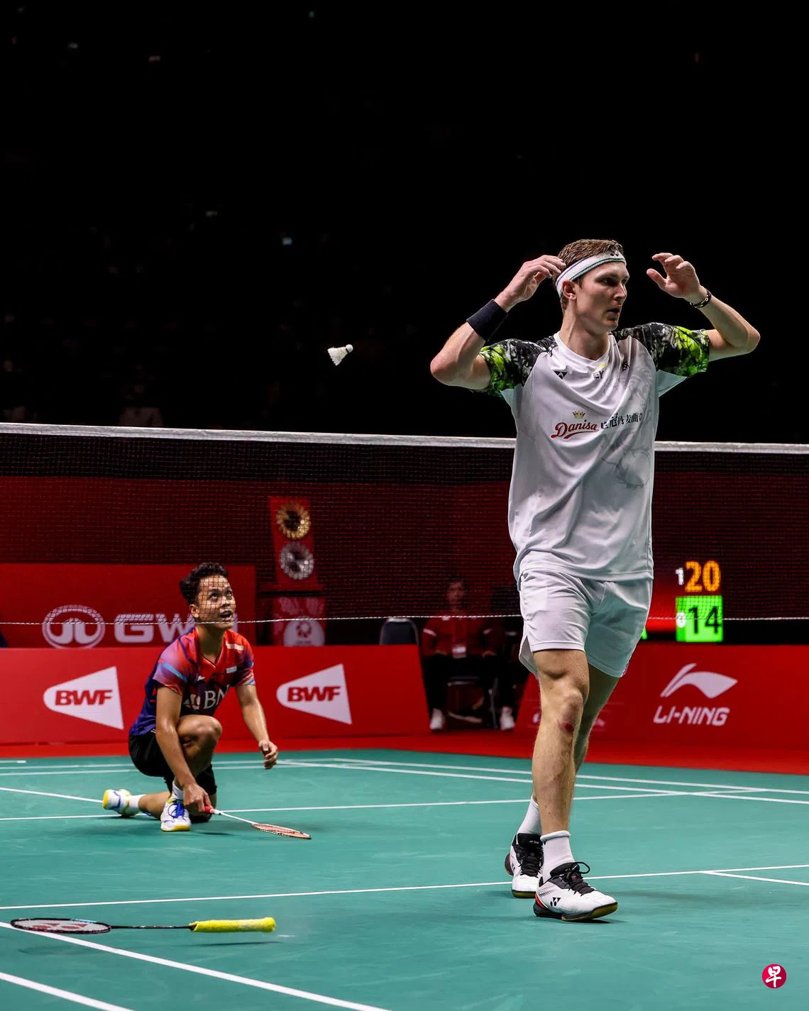 28岁的丹麦好手安赛龙也是上届总决赛冠军,他在半决赛遭到日本新星奈良冈功大的挑战差点无缘决赛。来到冠军争夺战,面对交手记录对自己占下风的印度尼西亚球员金廷,安赛龙打得非常有自信,仅用时41分钟就以21比13、21比14结束了比赛。