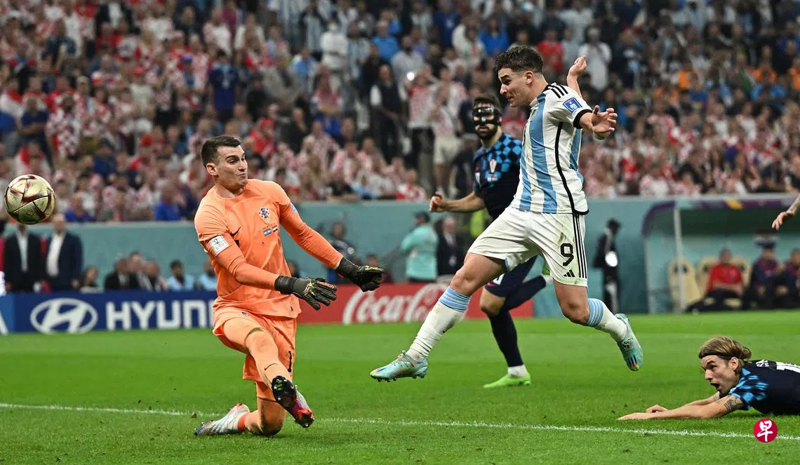 (多哈综合电)星期三(12月14日)凌晨阿根廷3比0大胜克罗地亚,前锋胡利安·阿尔瓦雷斯(Julian Alvarez)造点,随后更是送出两个进球,堪称本场比赛最耀眼的球星。