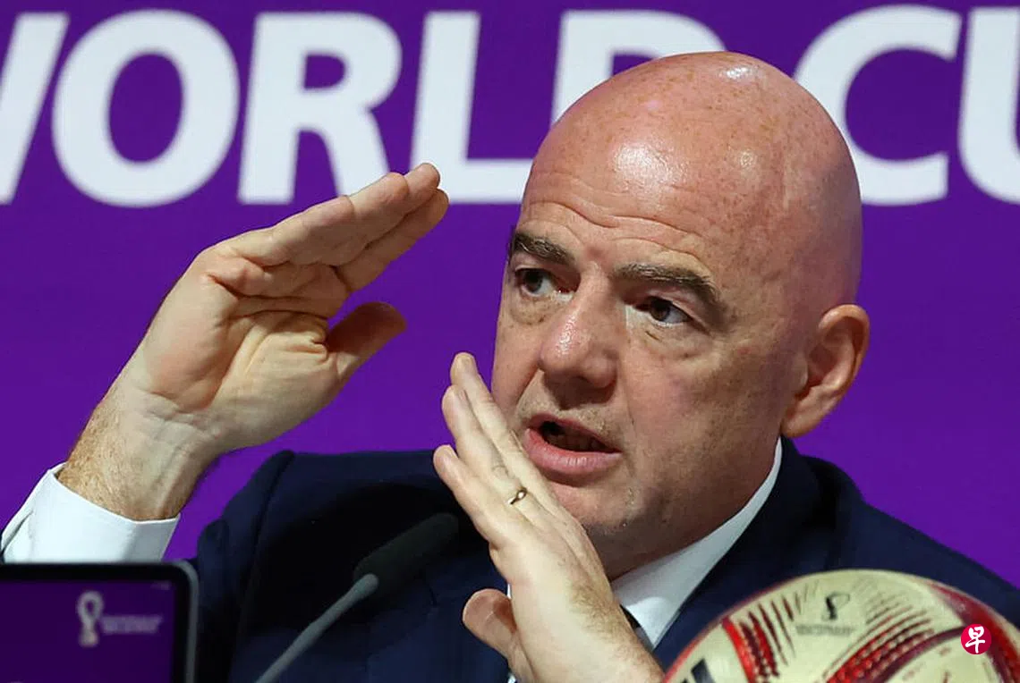 (多哈综合电)国际足总会长因凡蒂诺(Infantino)在世界杯结束前的记者会上表示,球员们应该“尊重足球”,不应该利用比赛进行抗议。他同时宣布,2025年世界球会杯将会进一步大幅扩军,由现有的七支球队扩军至32支,达到目前世界杯赛的规模。