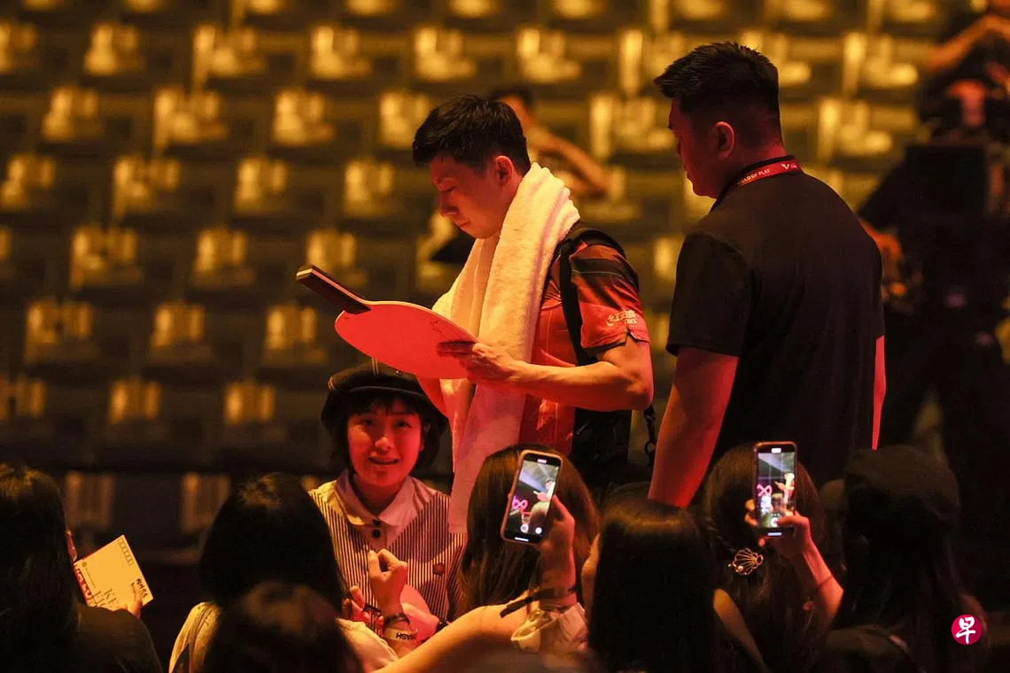 57岁的本地老球迷汪家良去年在新加坡大满贯没能获得马龙签名,当时他通过收集卡片只换到刘诗雯的。星期三中午12时抵达现场的他告诉《联合早报》:“很遗憾当时收集完卡片后,发现马龙的签名被换走了。今年我有机会出席签名会,非常谢谢WTT的安排,这是连金钱都买不到的签名。昨天(14日)看到官方释出这个消息后,我激动到睡不着。”