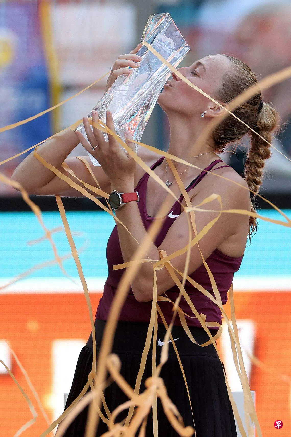 捷克老将佩特拉·科维托娃(Petra Kvitova)星期天(4月2日)在迈阿密网球公开赛中直落两盘击败哈萨克斯坦选手埃琳娜·雷巴金娜(Elena Rybakina),成功夺得女单桂冠。