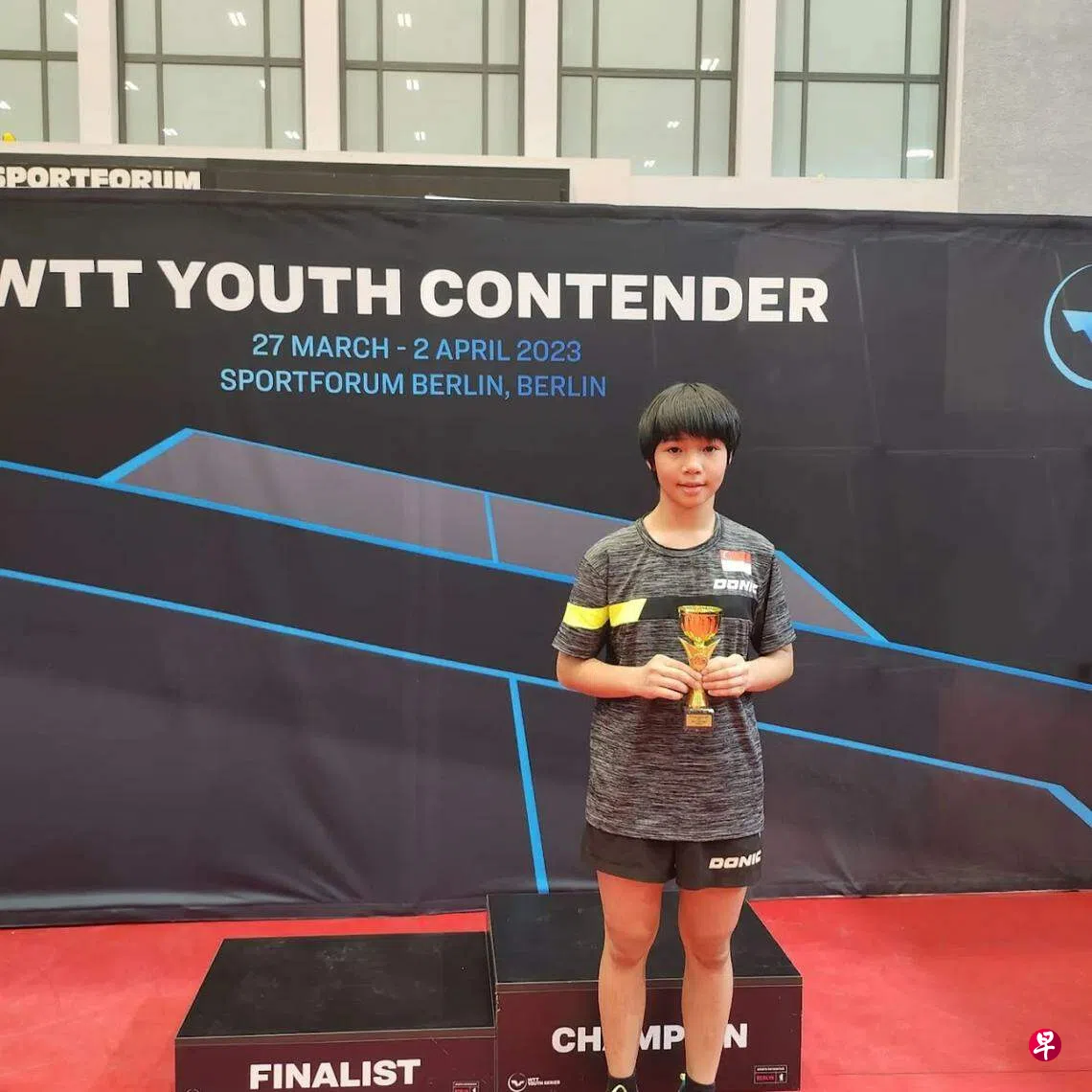 我国12岁乒乓球小将黎明映再创佳绩,她在本地时间星期天(4月2日)凌晨于德国举行的WTT柏林青年赛女单13岁以下(简称U13)组别称后。
