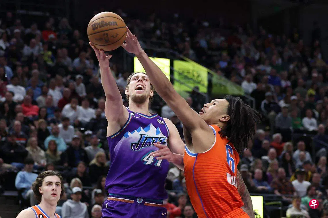 反观雷霆一方则是全员到齐,要为确保附加赛席位而战。首节比赛,双方比分交替上升,雷霆通过节末的高潮取得7分领先。第二节,爵士球星奥利尼克(Olynyk)率队不断追分。半场结束时,爵士落后雷霆3分。