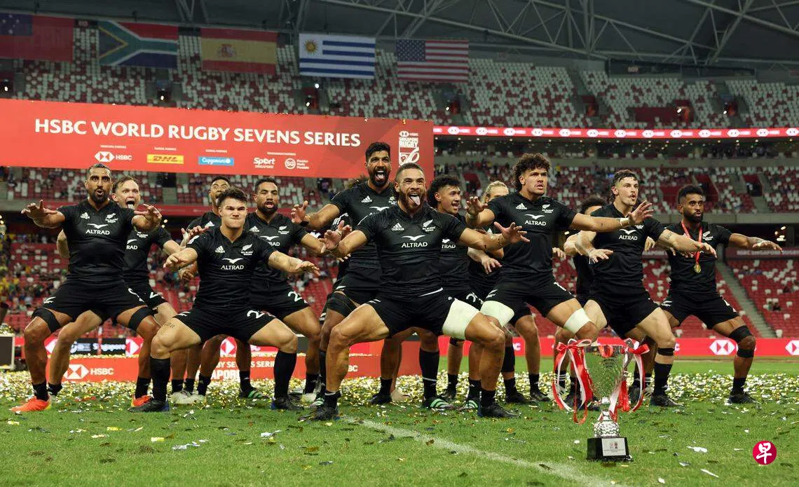 橄榄球界著名的“全黑队”新西兰队在星期天(4月9日)决赛中击败阿根廷,时隔18年再次在世界七人制橄榄球系列赛新加坡站夺冠,第一次在重建后的国家体育场跳哈卡舞(Haka)。国家体育场为本届赛事启用的新草皮也经受住了考验,经历两天赛事“折磨”,在比赛结束后,仍呈现完美面貌。