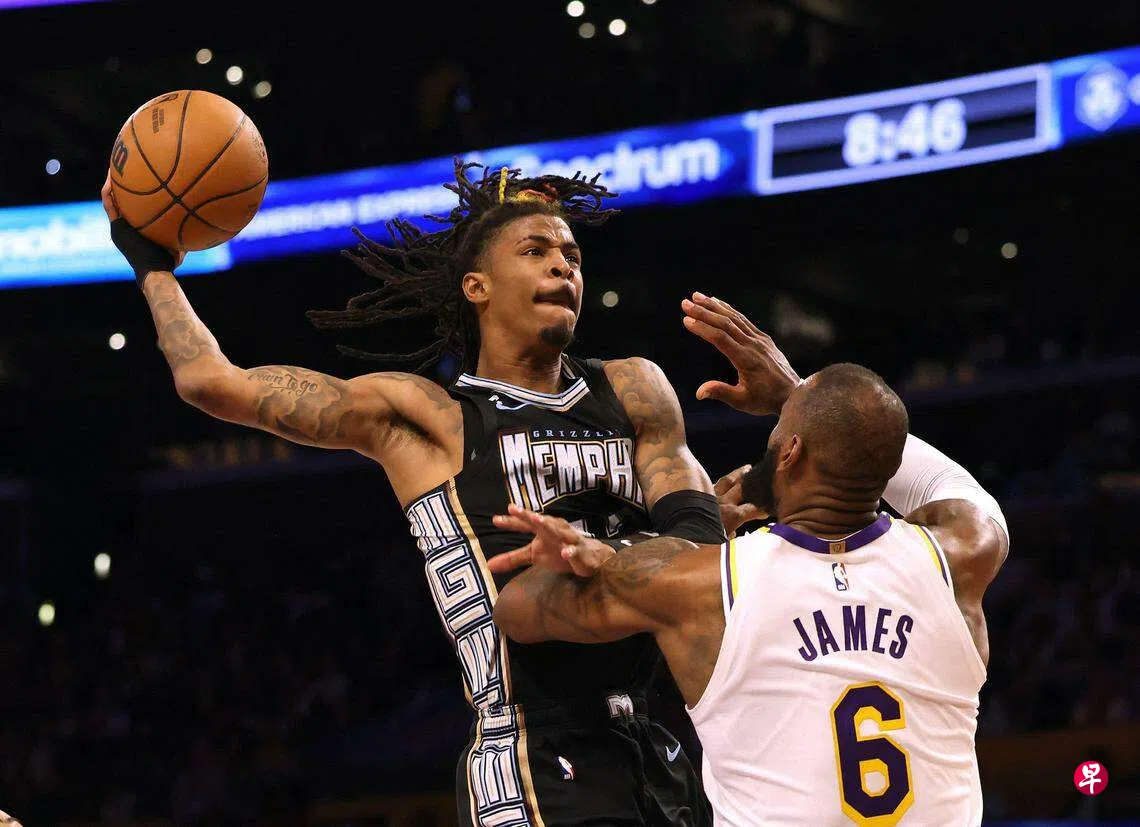 (洛杉矶综合电)孟菲斯灰熊(Memphis Grizzlies)首节送大礼,导致球队星期天(4月23日)在客场101比111不敌洛杉矶湖人(LA Lakers),在NBA首轮季后赛中以1比2的大比分落后。莫兰特(Morant)此役回归,空砍45分。