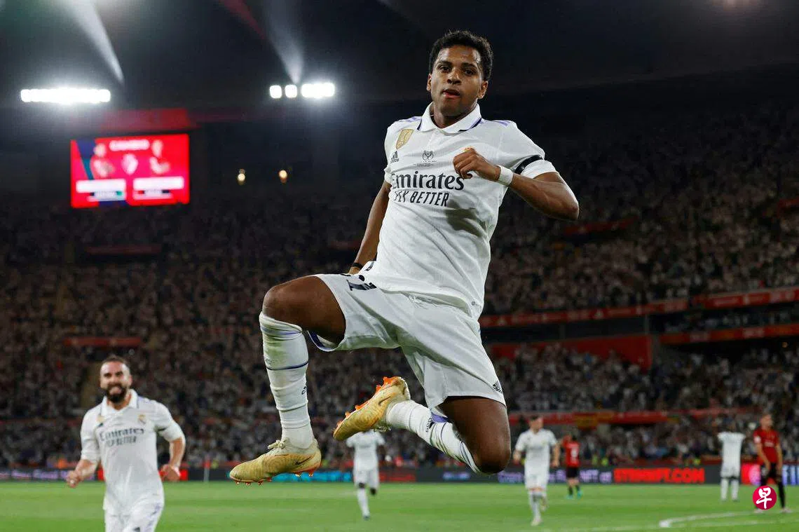 第70分钟,皇马再入一球锁定胜局,维尼修斯左路突破后的回传被对方后卫解围,克罗斯(Kroos)禁区边缘的射门也被阻挡,但罗德里戈小禁区边缘补射得手,帮助皇马2比1取胜。