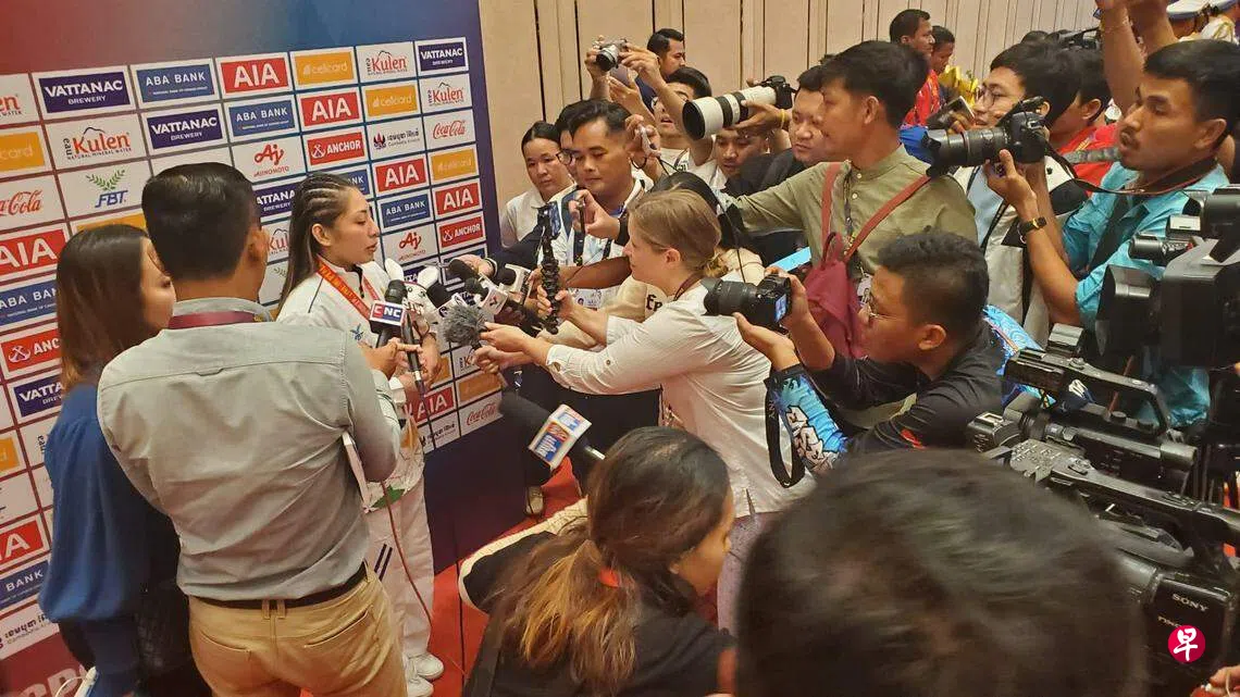 柬埔寨不是体育强国,在亚运会历史上只得过三面金牌,第一面是在2014年的韩国仁川亚运会,由跆拳道选手孙秀美(本届东运会开幕礼点燃火炬的选手)赢得,第二面就是由康洁莎贡献。在这个对格斗类项目狂热的国家,有实力、有颜值、笑容可掬的她,知名度可想而知。
