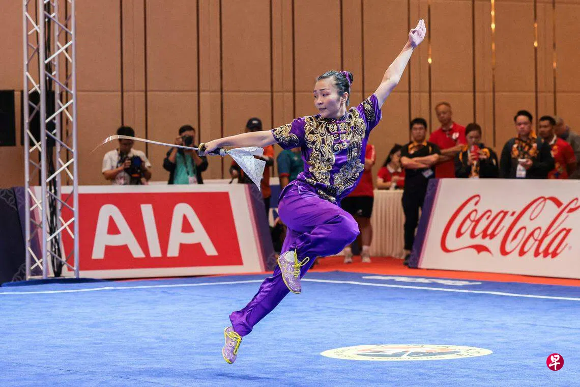 新加坡在武术比赛第二日赢得两枚金牌,除了王瓅苓,第五次参加东运会的林思韦时隔六年再度夺冠,以19.386分获得男子刀棍术冠军。