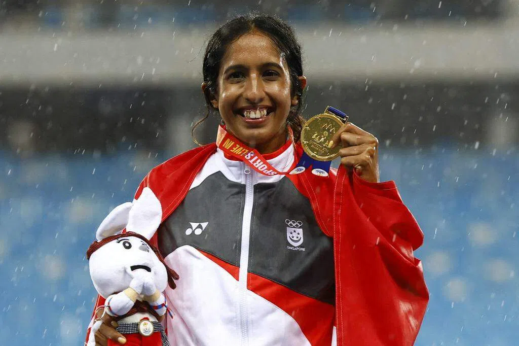 我国女飞人珊蒂星期五(5月12日)在柬埔寨东南亚运动会女子100米短跑以11秒41率先冲线,成为新加坡史上首位在单届东运会中包办100米和200米金牌的女选手后,受访时有些哽咽地说出了这番话。