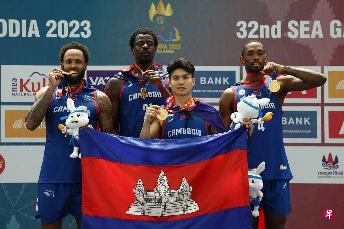在男子三人篮球决赛中,柬埔寨创历史打败东南亚篮球强国菲律宾,夺得冠军,不过从柬埔寨登上领奖台的照片,可以看出拿着柬埔寨国旗的球员,只有一人是柬埔寨“道地”的面孔,还有三个和东运会格格不入。