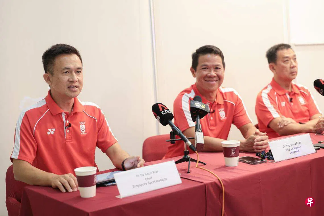 新加坡体育学院院长苏淳伟博士、新加坡全国奥理会秘书长曾成兴和东运会代表团团长邢祥进医生星期二(5月16日)出席了在金边亚坤咖啡店举行的记者会,谈到了我国健儿的表现。